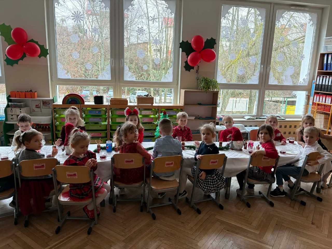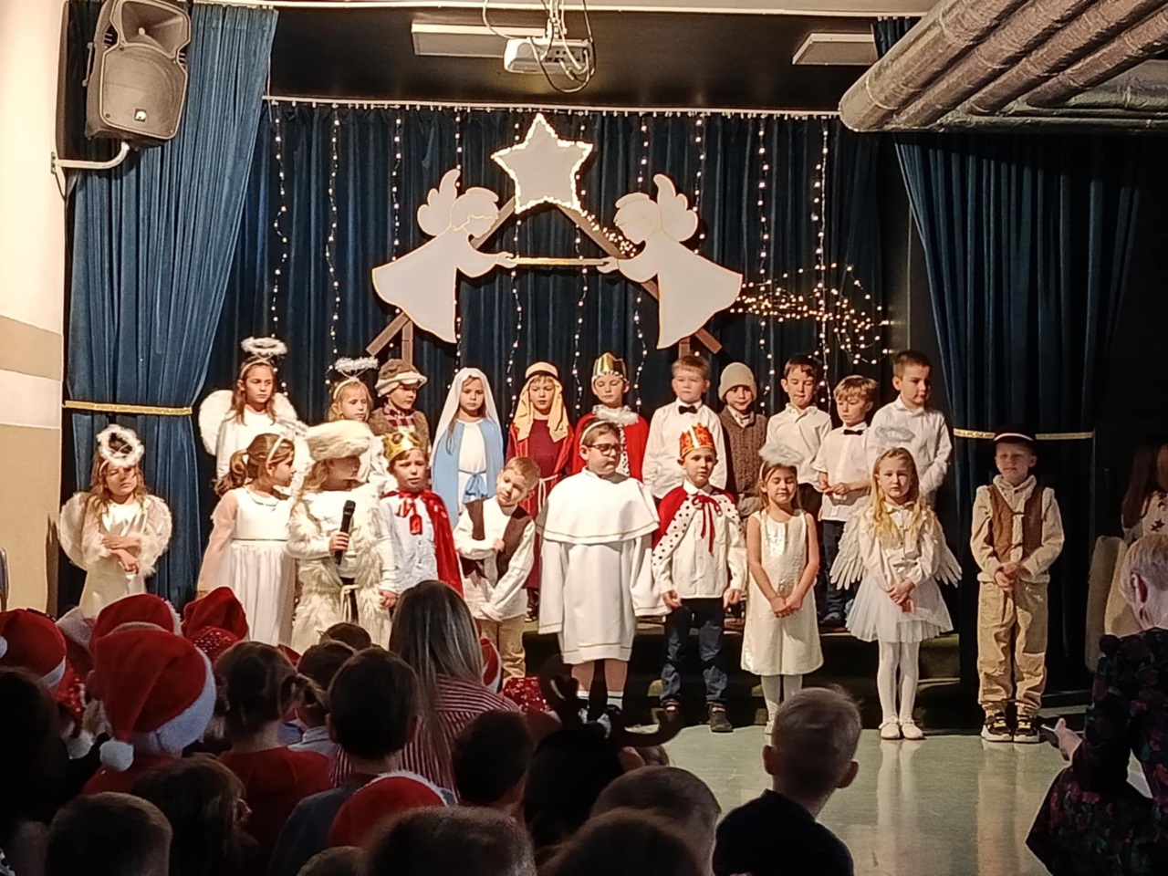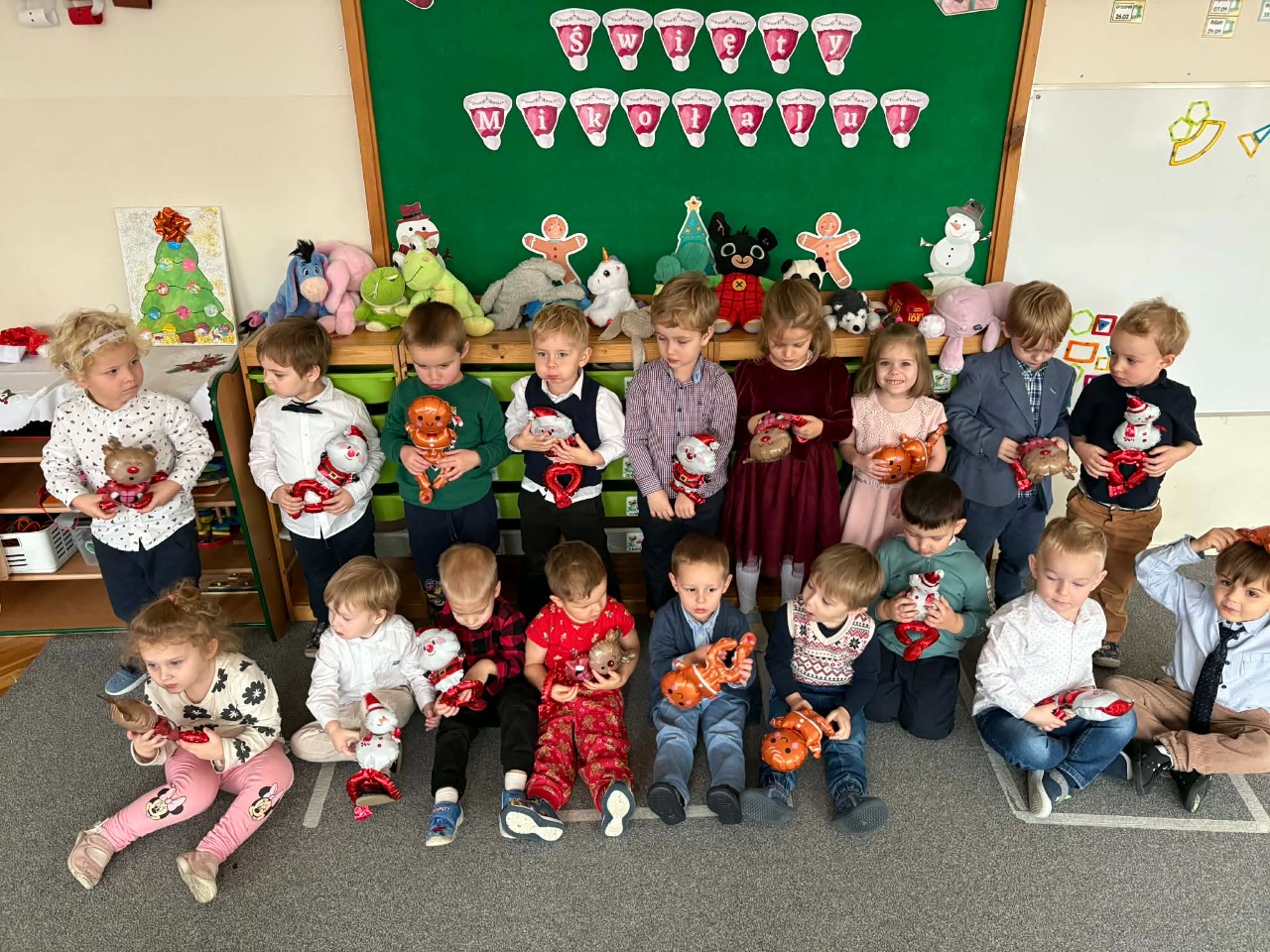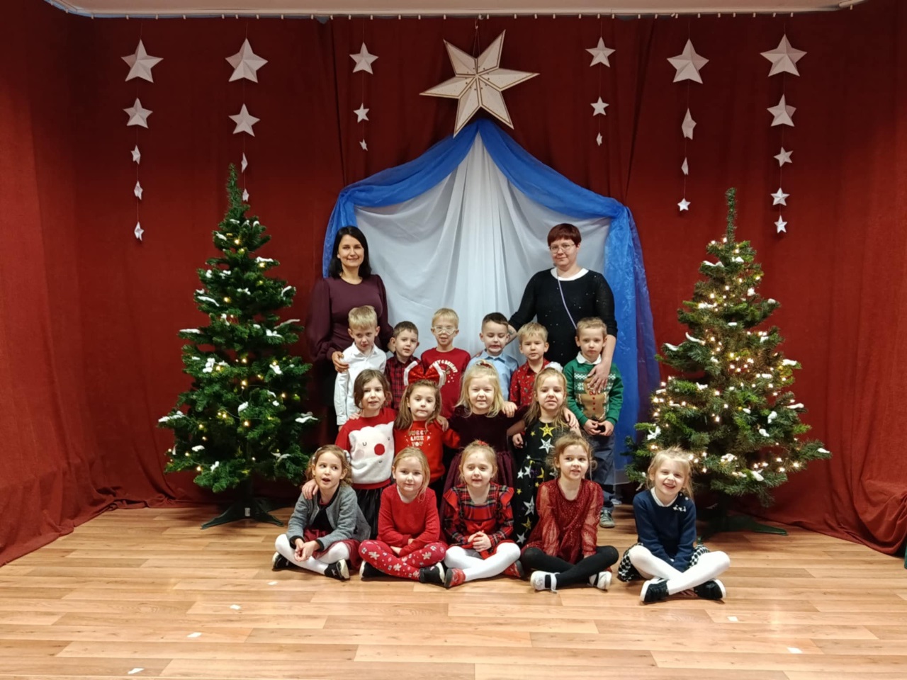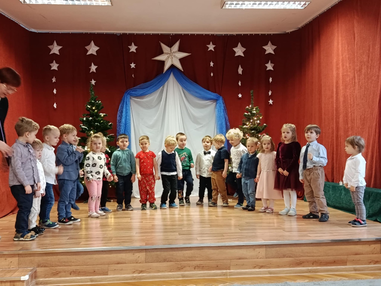 17 grudnia 2025 roku w naszym przedszkolu odbyło się wyjątkowe, świąteczne spotkanie z udziałem dzieci ze wszystkich grup. Każda z nich zaprezentowała się na scenie, śpiewając piękne świąteczne piosenki oraz kolędy, wprowadzając wszystkich w radosny, bożonarodzeniowy nastrój. Pani Dyrektor skierowała do całej społeczności przedszkolnej serdeczne życzenia z okazji nadchodzących Świąt Bożego Narodzenia. Następnie przedszkolaki z ogromnym zainteresowaniem obejrzały Jasełka przygotowane przez dzieci z grupy 0b. Zwieńczeniem tego wspaniałego dnia był uroczysty świąteczny obiad, podczas którego dzieci mogły skosztować tradycyjnych polskich potraw, takich jak barszczyk oraz pierogi. Był to dzień pełen radości, wzruszeń i świątecznej atmosfery. ![]()