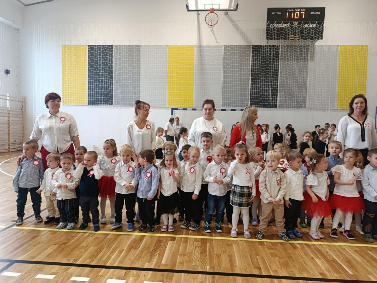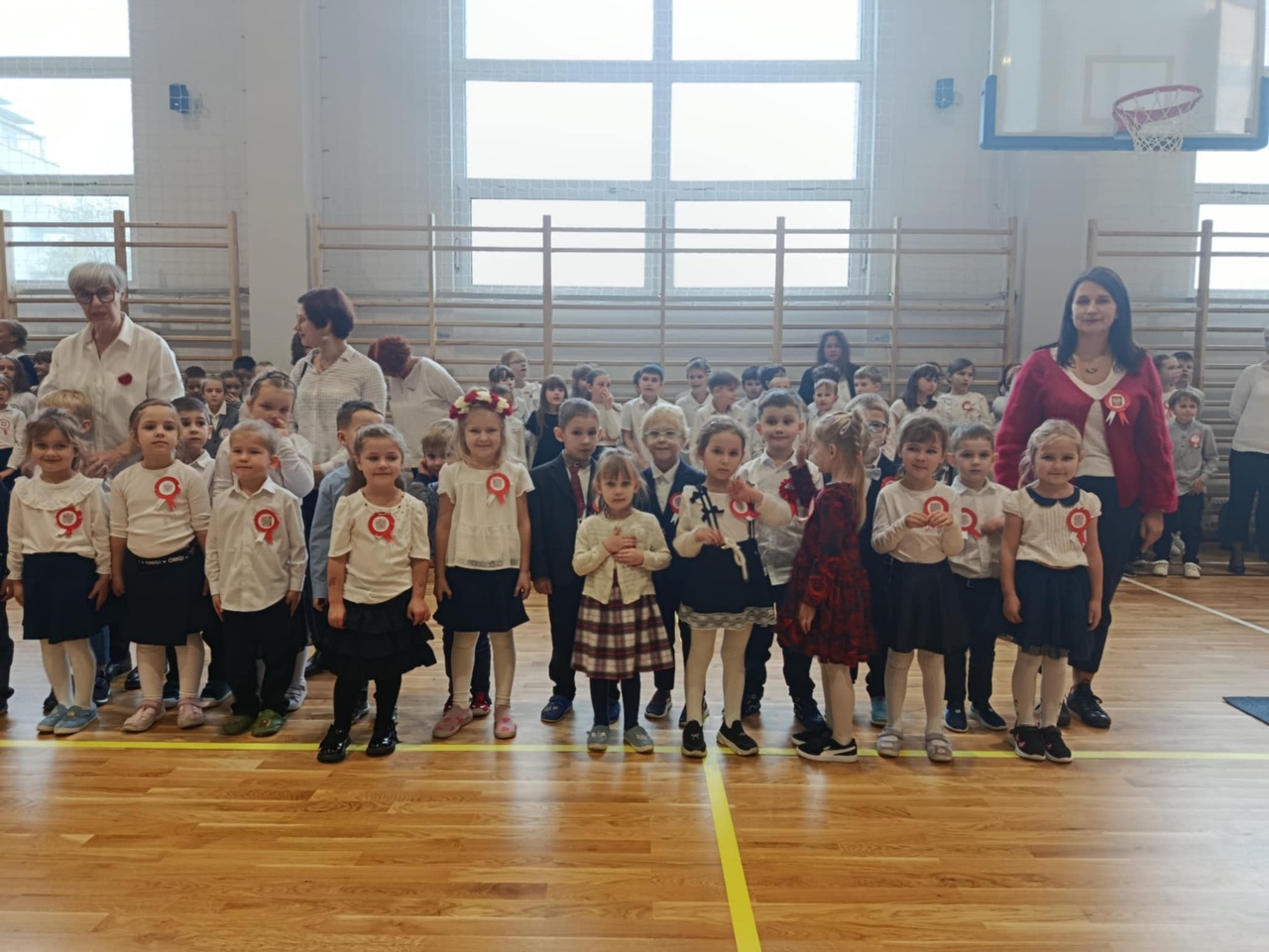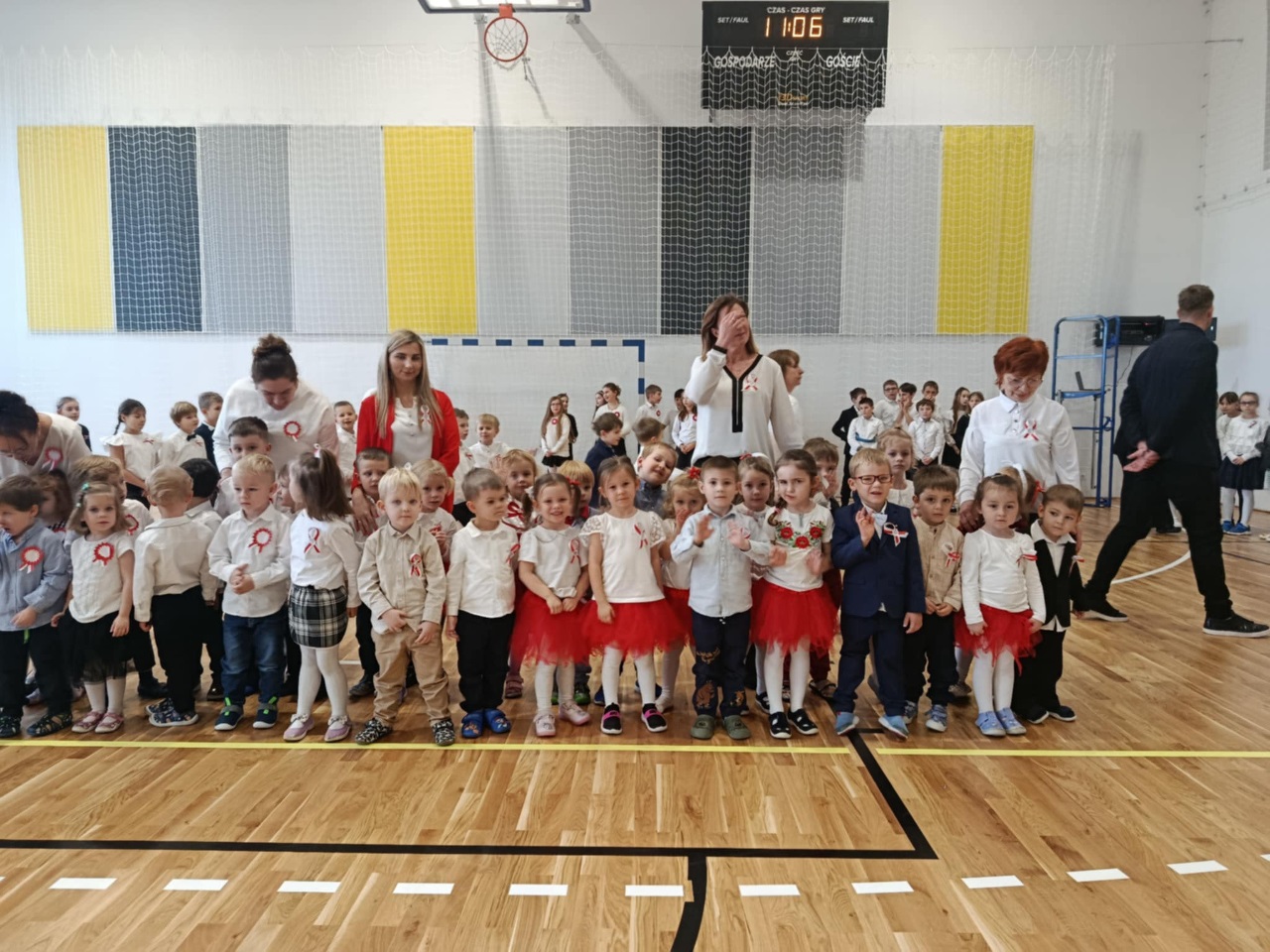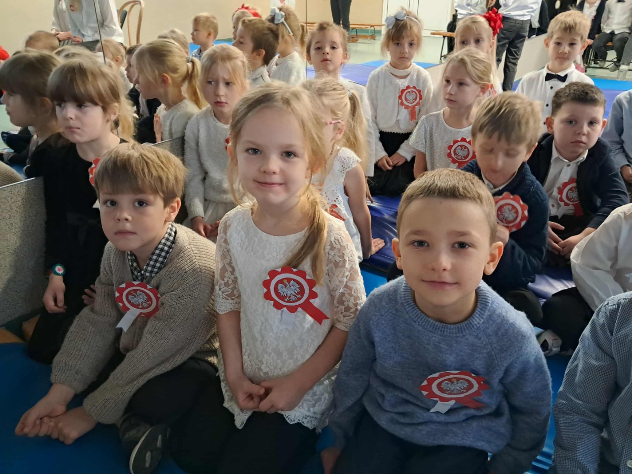 Podczas uroczystości mali artyści recytowali wiersze, śpiewali pieśni patriotyczne oraz zaprezentowali krótką inscenizację i taniec przypominającą o drodze Polski do wolności. Cała społeczność przedszkolna z dumą i wzruszeniem oglądała występ, a na zakończenie wszyscy wspólnie odśpiewali hymn narodowy.