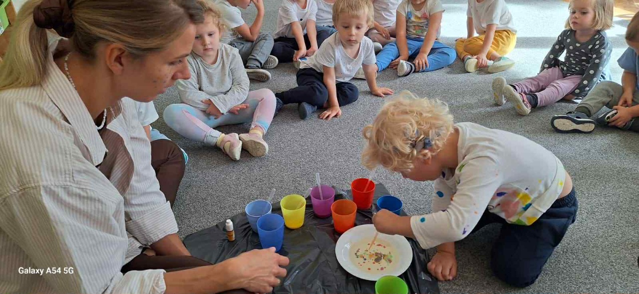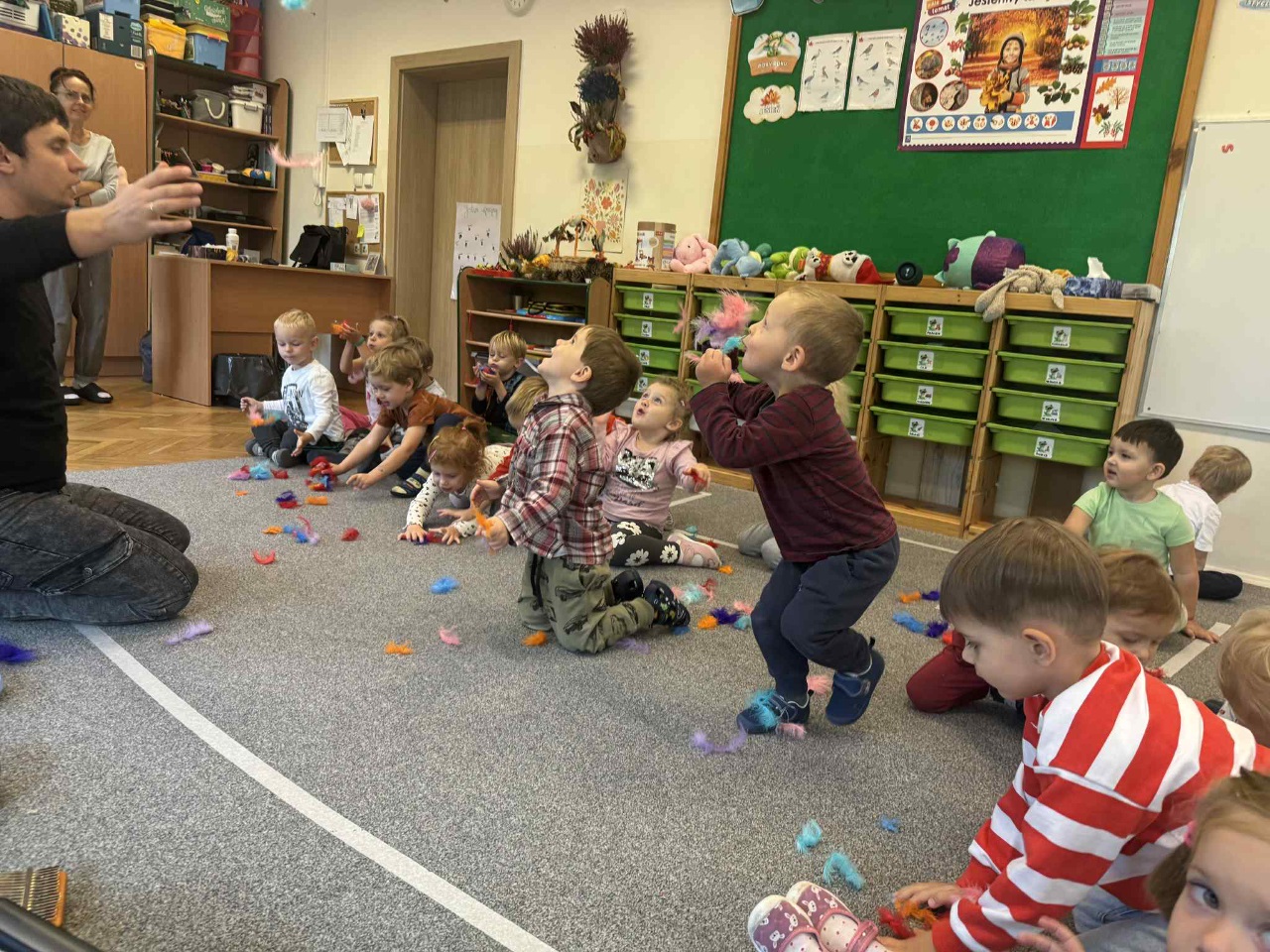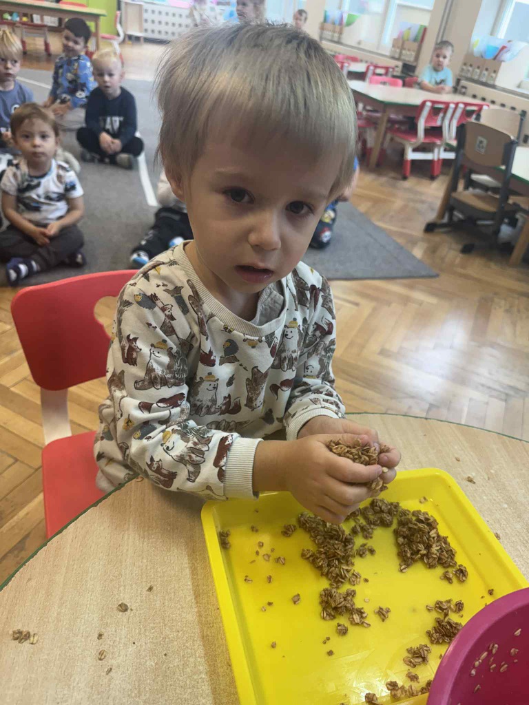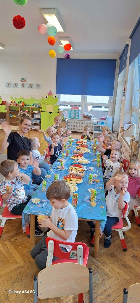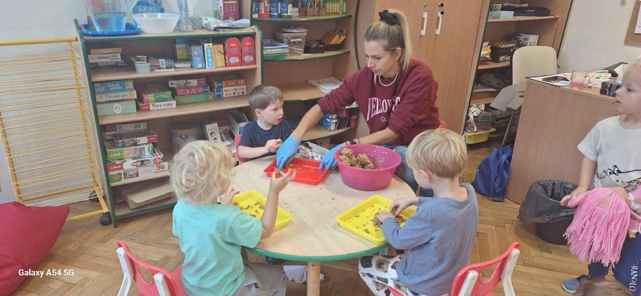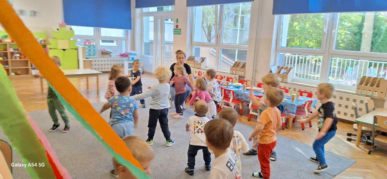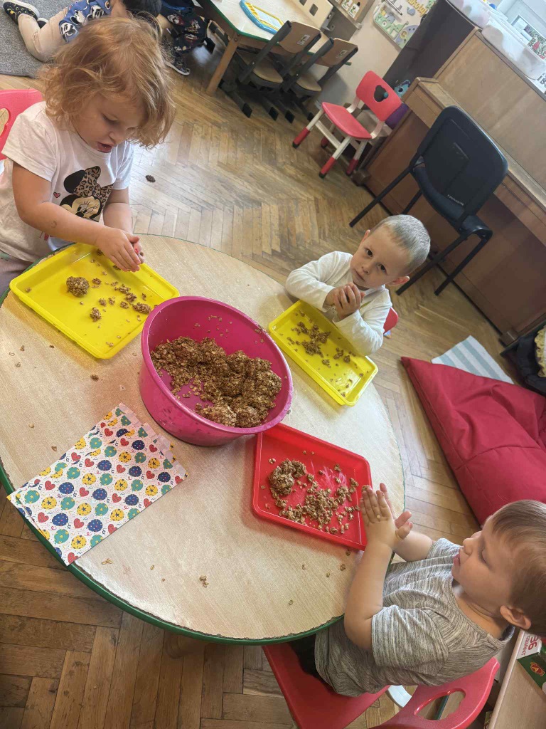 Obchodziliśmy Dzień Kropki na których eksperymentowaliśmy, liczyliśmy, segregowaliśmy. Obchodziliśmy Dzień bezpieczeństwa na drodze, świętowaliśmy Dzień Przedszkolaka i Dzień Chłopca, na których tańczyliśmy, rozwiązywaliśmy zagadki i robiliśmy ciasteczka owsiane. W grupie w Dniu Muzyki odbyły się warsztaty muzyczne z Panem Kamilem, które zahipnotyzowaly dzieci. Tworzyliśmy zabawki kreatywne, które wspomagają naszą motorykę małą i wspierają w rozwoju. Uczestniczyliśmy w przedstawieniu, dwójka dzieci z naszej grupy wystąpiła na scenie w roli aktora.