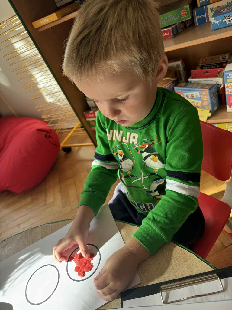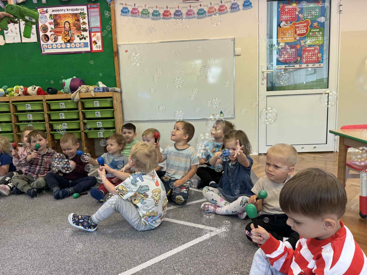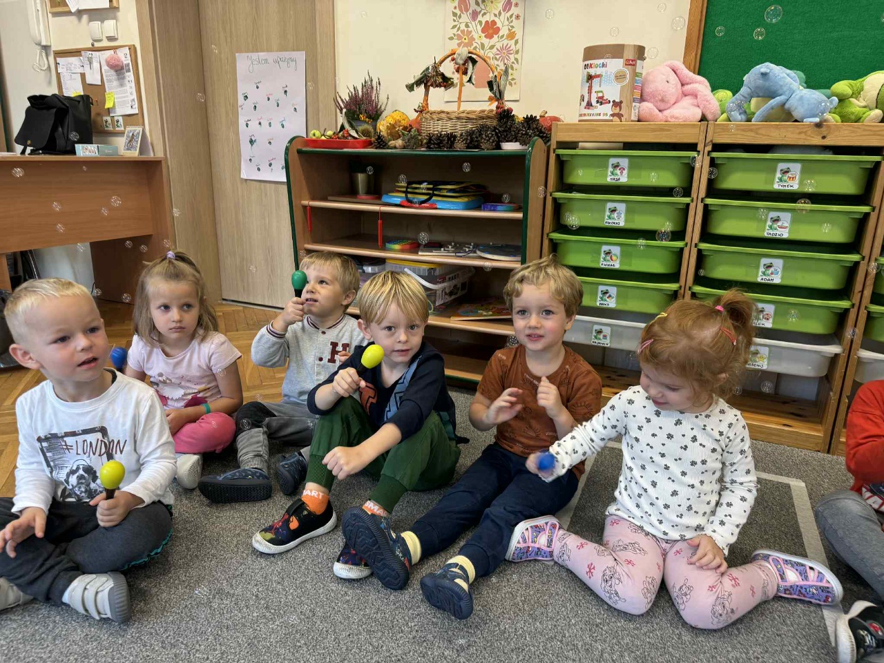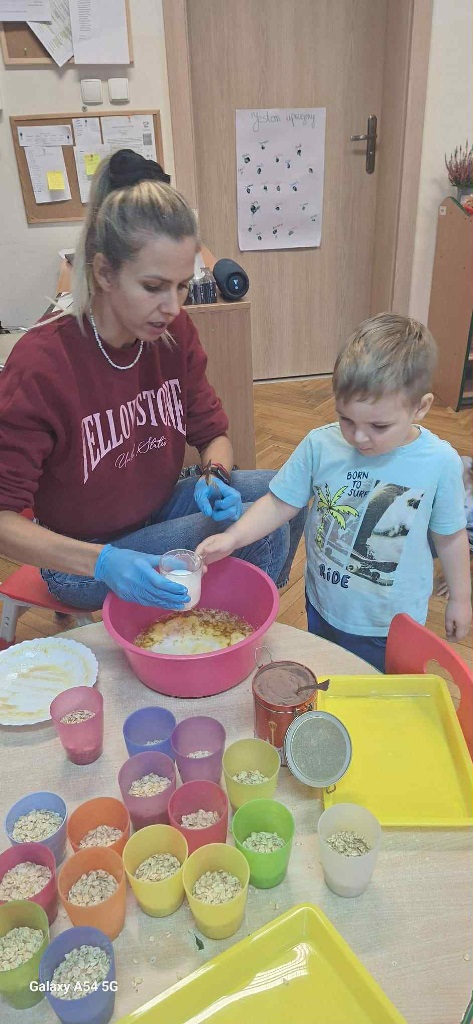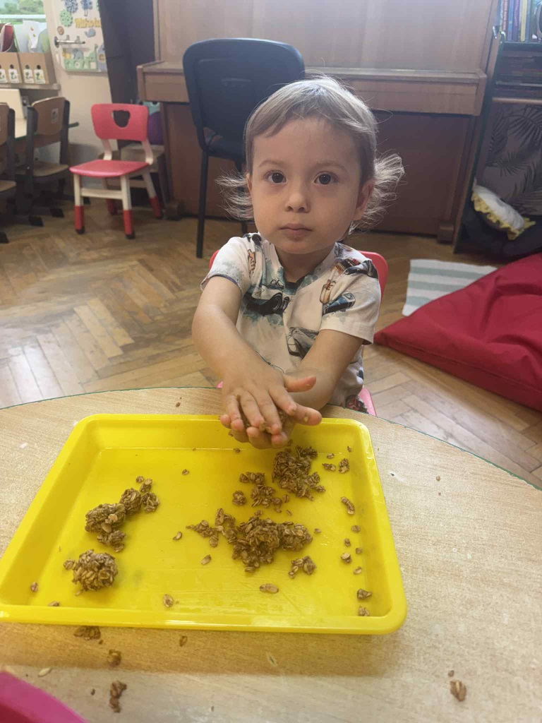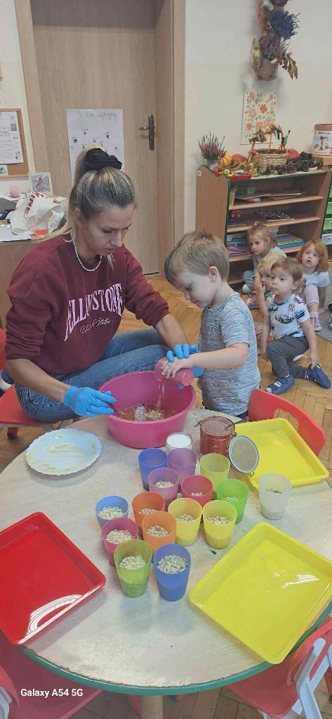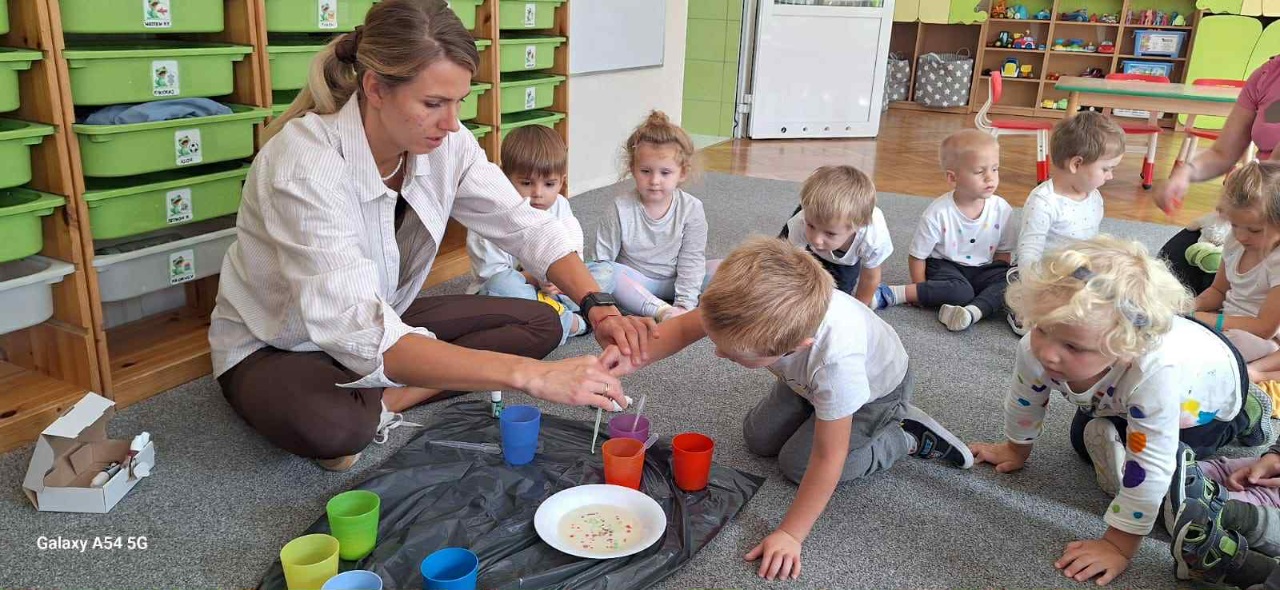 Obchodziliśmy Dzień Kropki na których eksperymentowaliśmy, liczyliśmy, segregowaliśmy. Obchodziliśmy Dzień bezpieczeństwa na drodze, świętowaliśmy Dzień Przedszkolaka i Dzień Chłopca, na których tańczyliśmy, rozwiązywaliśmy zagadki i robiliśmy ciasteczka owsiane. W grupie w Dniu Muzyki odbyły się warsztaty muzyczne z Panem Kamilem, które zahipnotyzowaly dzieci. Tworzyliśmy zabawki kreatywne, które wspomagają naszą motorykę małą i wspierają w rozwoju. Uczestniczyliśmy w przedstawieniu, dwójka dzieci z naszej grupy wystąpiła na scenie w roli aktora.