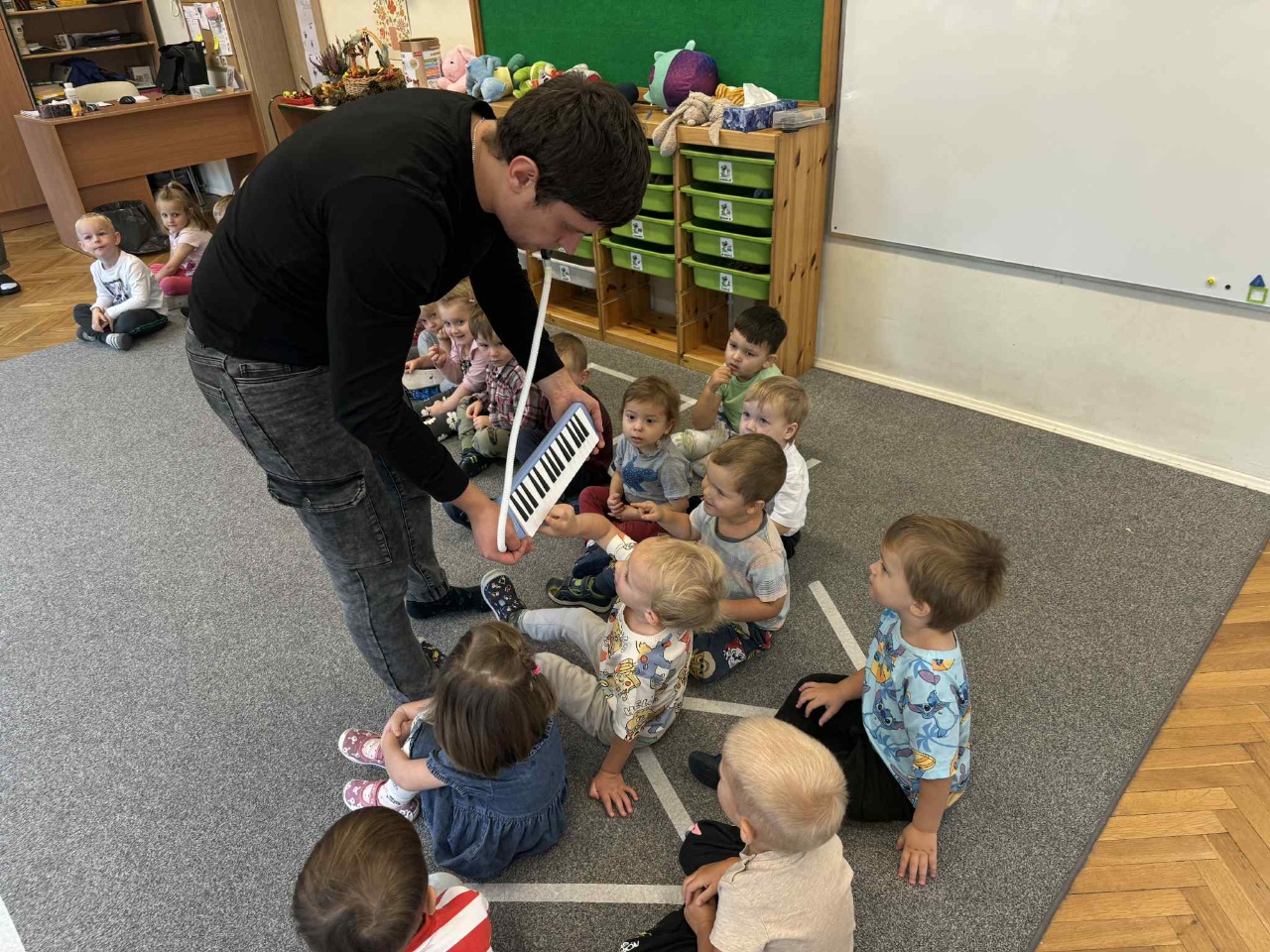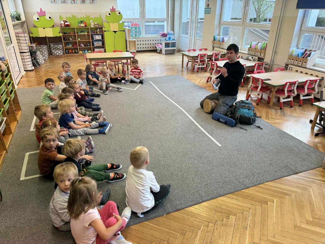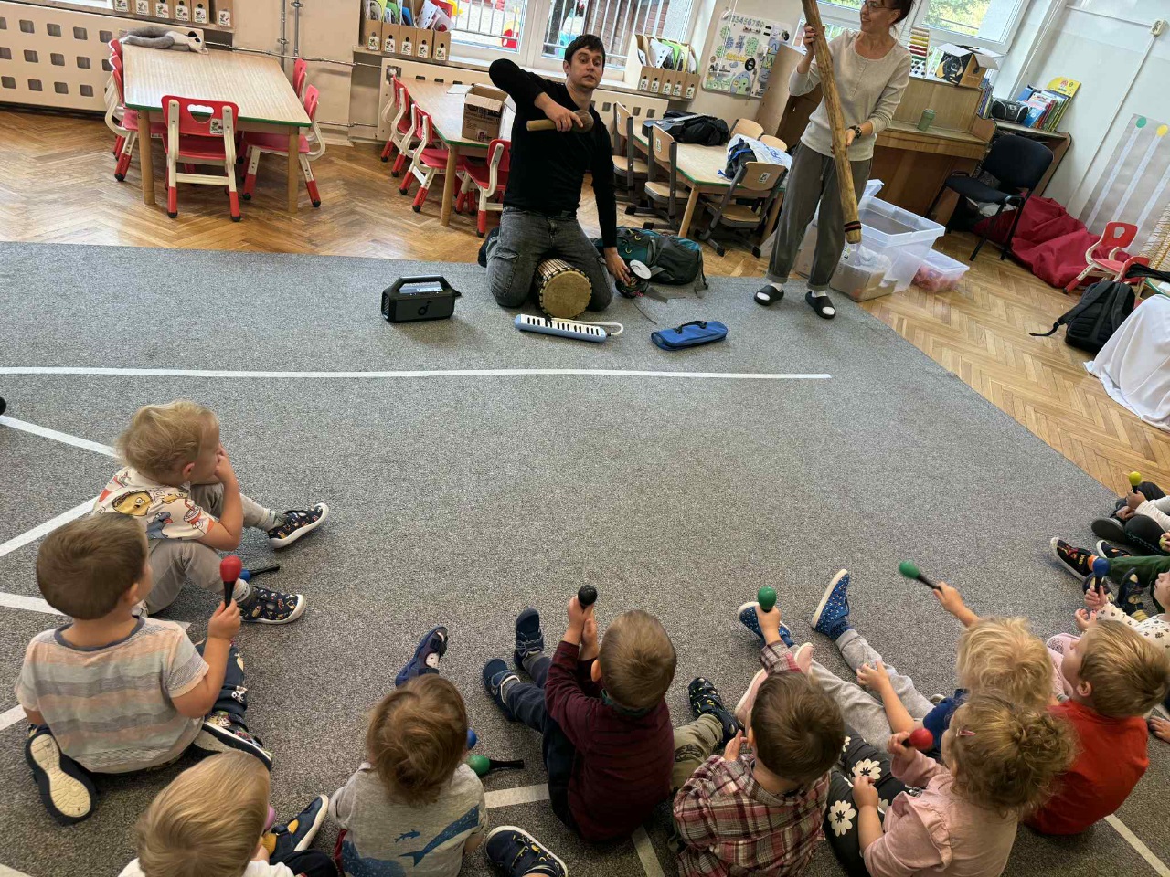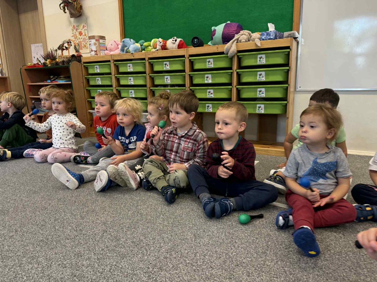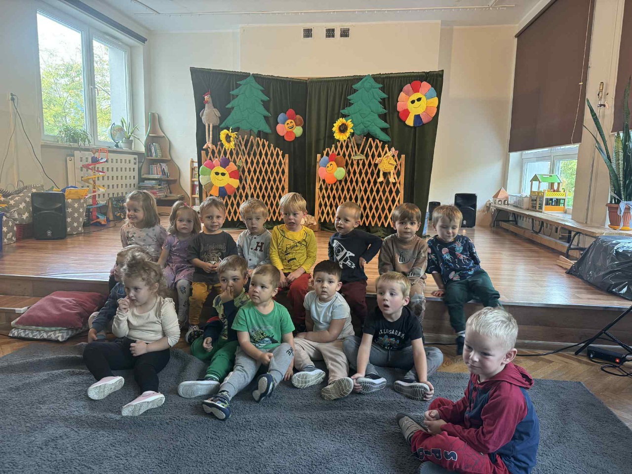 Obchodziliśmy Dzień Kropki na których eksperymentowaliśmy, liczyliśmy, segregowaliśmy. Obchodziliśmy Dzień bezpieczeństwa na drodze, świętowaliśmy Dzień Przedszkolaka i Dzień Chłopca, na których tańczyliśmy, rozwiązywaliśmy zagadki i robiliśmy ciasteczka owsiane. W grupie w Dniu Muzyki odbyły się warsztaty muzyczne z Panem Kamilem, które zahipnotyzowaly dzieci. Tworzyliśmy zabawki kreatywne, które wspomagają naszą motorykę małą i wspierają w rozwoju. Uczestniczyliśmy w przedstawieniu, dwójka dzieci z naszej grupy wystąpiła na scenie w roli aktora.